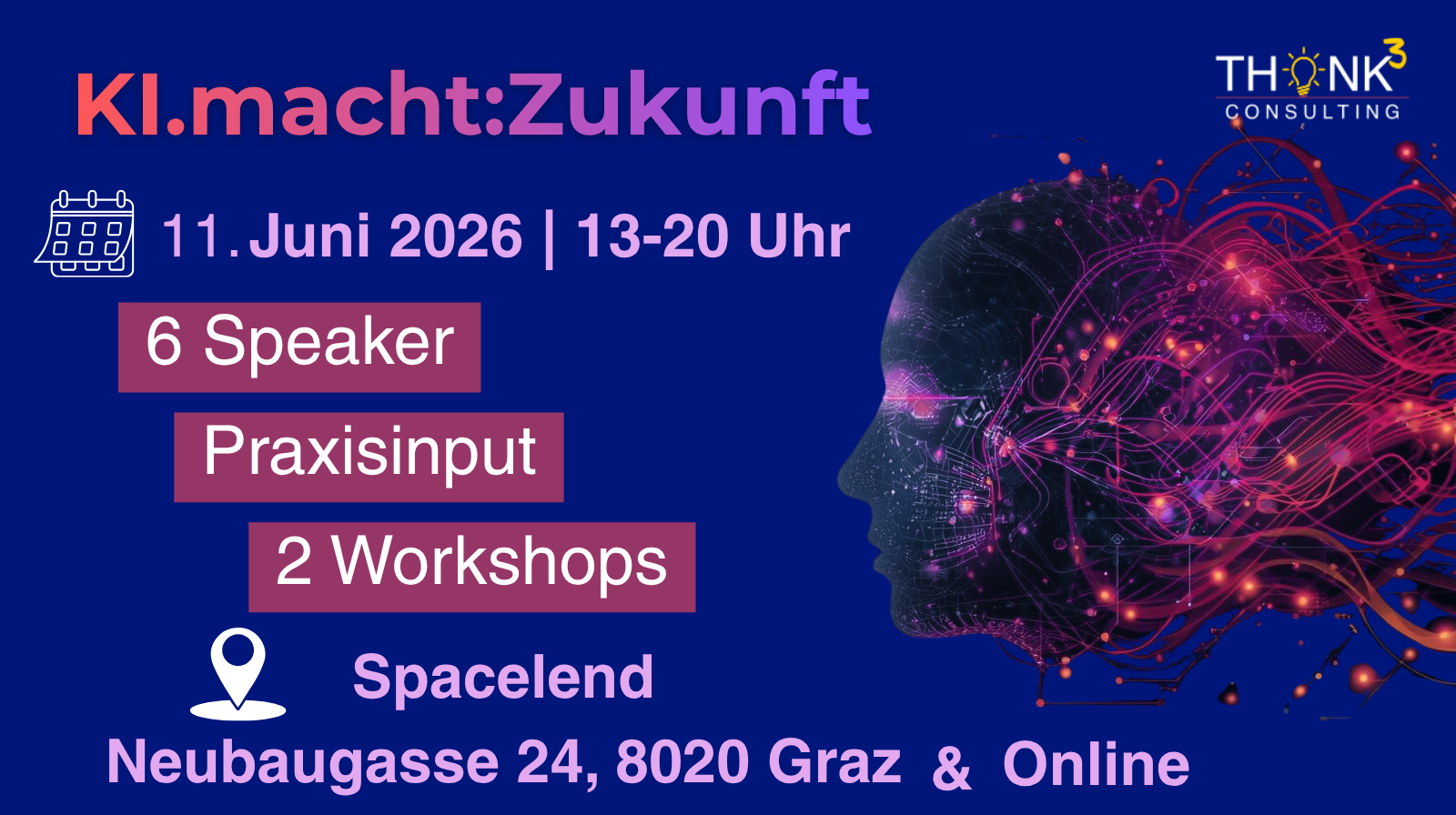 KI.Macht:Zukunft – das KI‑Event für Solopreneure, KMU‑Entscheider & Handwerker. Praxis, Inspiration & Top‑Speaker für Ihren Zukunftsvorsprung. 11. Juni in Graz.